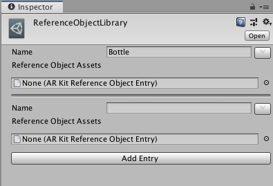 Reference objects have a Name, followed by a list of provider-specific entries. In the example above, the object only has one entry for ARKit.